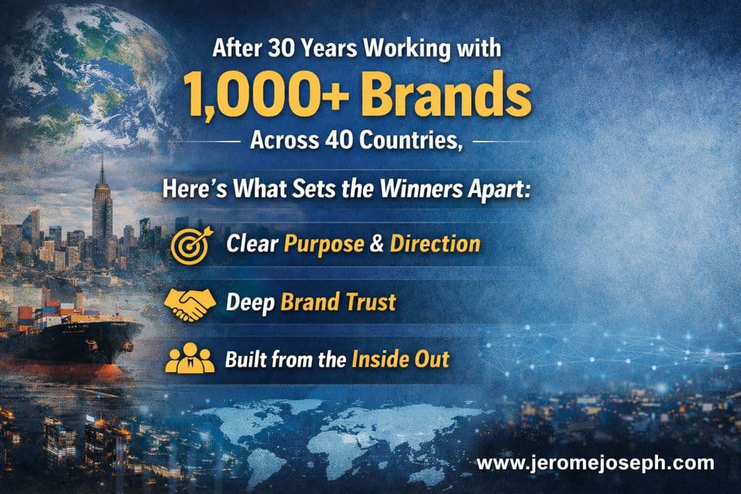 Dr Jerome Joseph is widely recognized as a global authority in branding, leadership, and future focused corporate capability building. His work spans Asia, the Middle East, and international markets, with Singapore as a key hub.